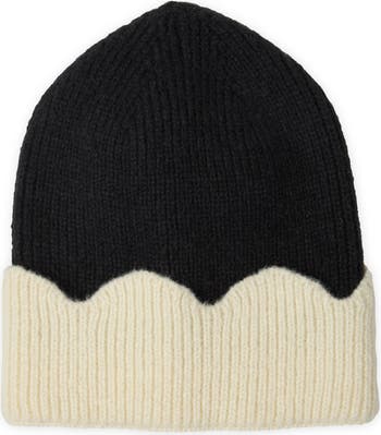Contrasting scalloped trim frames this cozy knit beanie in effortless charm.