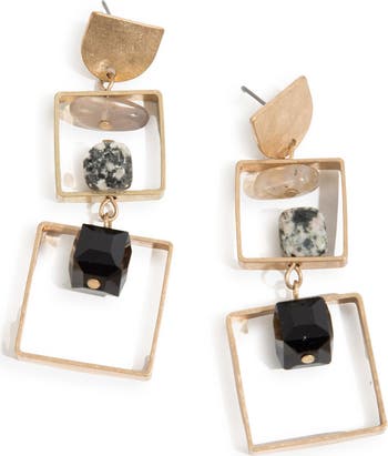 Designed to evoke the beauty of the Sedona desert, these striking earrings showcase open-square drops accented by faceted beads and genuine stones.