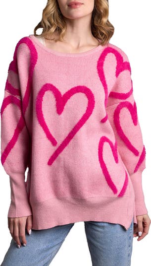 An oversized fit enhances the comfort and coverage of this cuddly sweater that's patterned in hearts to sweeten your look.