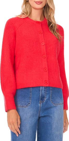 Raglan sleeves lend easy movement to this relaxed-fit cardigan made with soft ribbing.