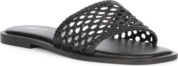 An intricately woven design inspired by classic wicker brings warm-weather charm to a versatile slide sandal crafted from luxe leather.