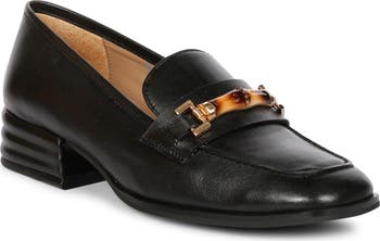 A textured bit detail and classic loafer styling lend timeless elegance to this polished slip-on set on a low, sculptural heel.