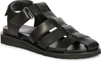 A rich leather upper adds timeless sophistication to a fisherman sandal fitted with adjustable ankle straps for a customized fit.