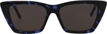 Modern frames in a sharp cat-eye silhouette are fitted with protective, tinted lenses and make a head-turning statement to add to your sunny look.