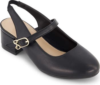 - Slingback strap, adjustable vamp strap with buckle closure