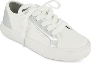 Metallic trims and logo branding detail a casual court-inspired sneaker finished with grip sole perfect for the playground.