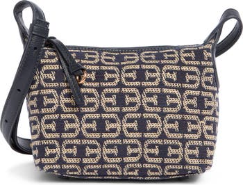 A monogrammed exterior amplifies the signature appeal of a crossbody bag fitted with a compact interior and an adjustable strap.