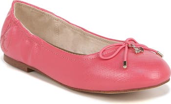 A delicate logo charm adorns the bow-trimmed toe of a charming ballet flat.