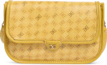 Gleaming logo hardware and monogrammed faux leather add a dose of brand-signature appeal to this slim crossbody bag designed with a removable strap for versatile wear.