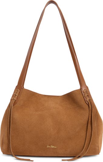 Carry your essentials in this roomy tote bag fashioned with dual shoulder straps and woven tassel trim for Western style.