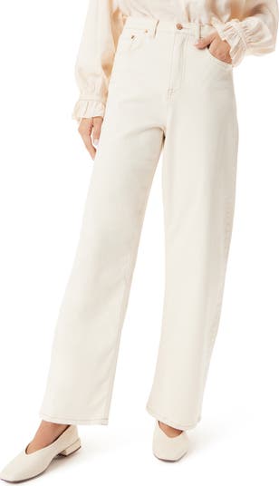 These creamy-hued jeans are cut from stretch denim in a subtle curved silhouette that makes them the perfect pair to ease into the barrel-leg trend.