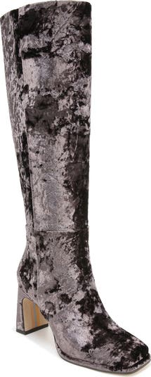 A sculptural block heel and squared toe lend a mod vibe to a knee-high leather boot with Sam Edelman's signature logo hardware on the heel counter and zipper.