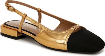 Smooth suede highlights the square toe of this timelessly sophisticated slingback flat.
