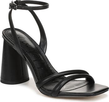 Elevate your look with this chic ankle-strap sandal framed by tubular vamp straps and boosted by a lofty conical heel.