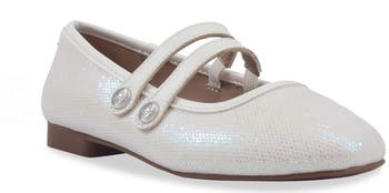 Your kiddo will be ready to dazzle in this sparkling ballet flat topped with double straps secured by the brands' logo hardware.