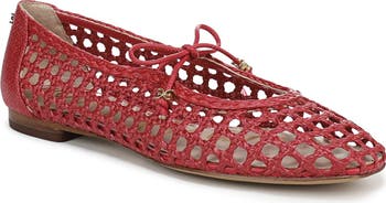 Woven composition puts a boho-chic spin on a classic ballet flat embellished with a dainty bow.