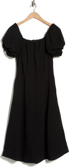 Hit refresh on white dress season with a shoulder-showing option fixed with dreamy billowed sleeves that end at the elbow.