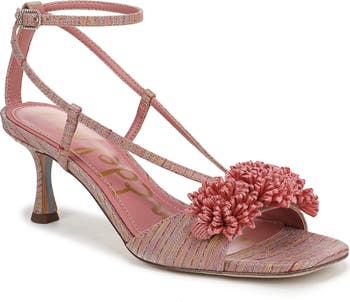 Flowery embellishments add a textural flourish to a strappy sandal that's an instant summery standout.