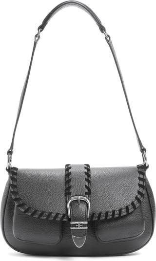 Whipstitching and simple polished hardware deliver Western charm to this shoulder bag that has a smaller interior for essentials only.