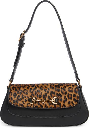 Signature logo hardware stands out against the front flap of a structured shoulder bag rendered in sleek faux leather and fitted with an adjustable strap for comfortable wear.
