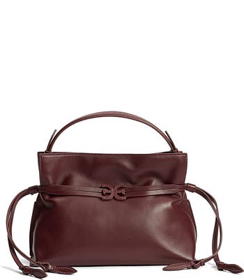 A tonal logo accent centers the exterior drawstring on this everyday-sized leather bag designed with a softly structured profile and interior pockets to keep your essentials organized.