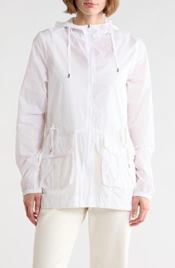 Keep protected from sudden rain showers while showing off your clothing option in this hooded anorak.