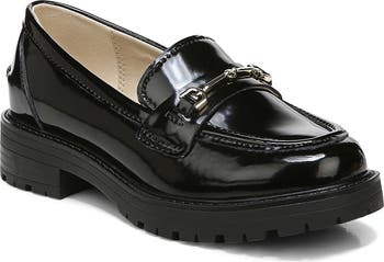 Gleaming bit hardware provides a polished finish for a classic loafer lifted by a block heel and platform sole.