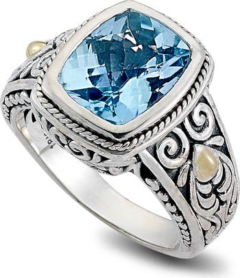 A faceted citrine stone adds sparkle to an etched sterling silver ring with 18K gold accents.