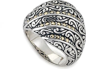 Elegant engraving and 18-karat gold-plated accents bring depth to this large ring that's sure to make an eye-catching statement.