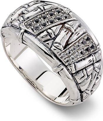 Inset stone enhance the shine of a bamboo-inspired ring made in sterling silver using traditional Balinese and Thai jewelry-making techniques.