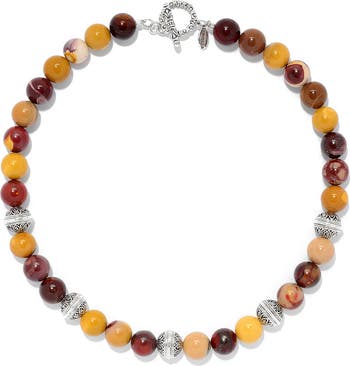 Polished semi-precious stones add vibrant shine to this sterling silver necklace secured by an ornately detailed toggle closure.