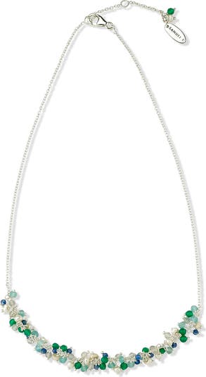 A cluster of multiple stones adds vibrancy to a statement necklace crafted from sterling silver.