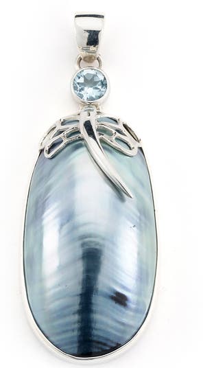 - Sterling silver/shell/blue topaz