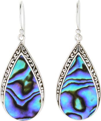 Bezel-set semiprecious stones bring a pretty pop of color to your lobes in these sterling silver drops with carved detailing.