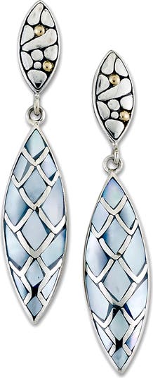 Warm 18-karat gold accents shine brightly against these polished earrings sweetened further by mother-of-pearl drops.
