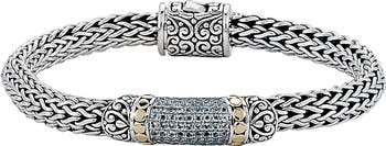 Elegant engraving and filigree swirls draw the eye to this sterling-silver bracelet that's shimmering with semiprecious stone and 18-karat gold-plated accents.