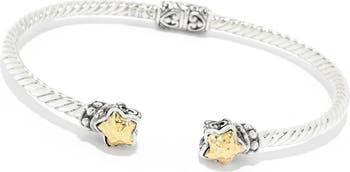 Star-shaped tips made of hammered 18-karat yellow gold bring bold pops of contrast to this handcrafted sterling silver bangle.