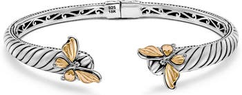 Gleaming 18-karat-gold butterflies whimsically flutter along your wrist in a slim cable-chain bangle handcrafted from antiqued sterling silver.