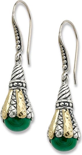 Vibrant ends splash color to your lobes in these elegant filigree drop earrings handcrafted from antiqued sterling silver with 18-karat gold accents.