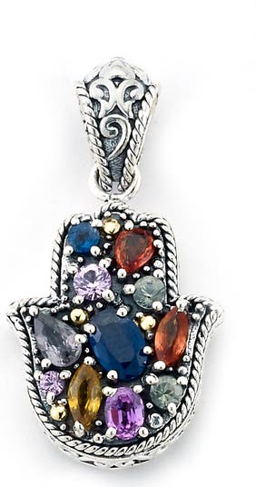 Sterling Silver & 18K Gold Multicolor Sapphire Hamsa Pendant