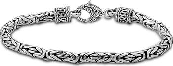 A Byzantine-inspired design elevates this slim bracelet handcrafted from polished sterling silver.