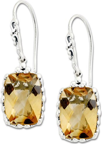 Sparkling cushion cut citrine drops suspend from sterling silver earrings for luxe style.
