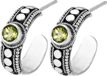 Polished dots enrich striking sterling silver hoop earrings showcasing faceted semiprecious stones or polished pearls for elegant shine.