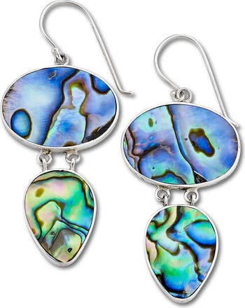 - Sterling silver free form abalone drop earrings - French hook - Approx. 2 3/16" L x 7/8" W - Imported