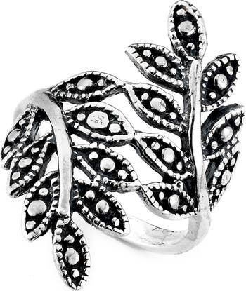 - Sterling silver leaf design ring - Approx. 1.25" L x 0.75" W ring face - Imported