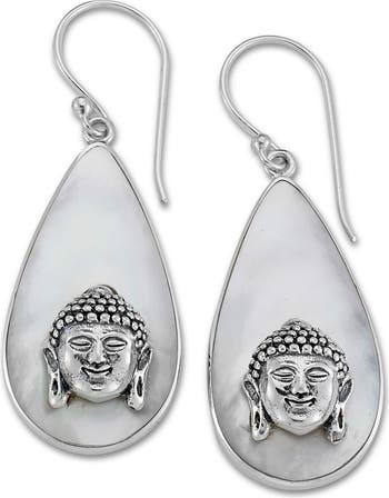 - - Sterling silver mother of pearl buddha earrings - French hook - Approx. 1 3/4" L x 5/8" W - Imported