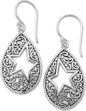 Show off elegant shine in sterling silver teardrop earrings crafted with star cutouts and intricate filigree.