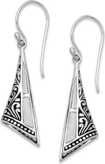 Intricate filigree detailing accent the sides of these trumpet earrings handmade from sterling silver.