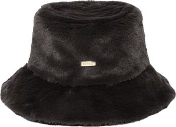Complete your look with a faux-fur bucket hat finished with a gleaming logo plaque accent and full of '90s style.