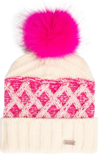 Give your winter wear a fashionable update with this classic diamond-pattern knit beanie finished with a faux-fur pom pom.
